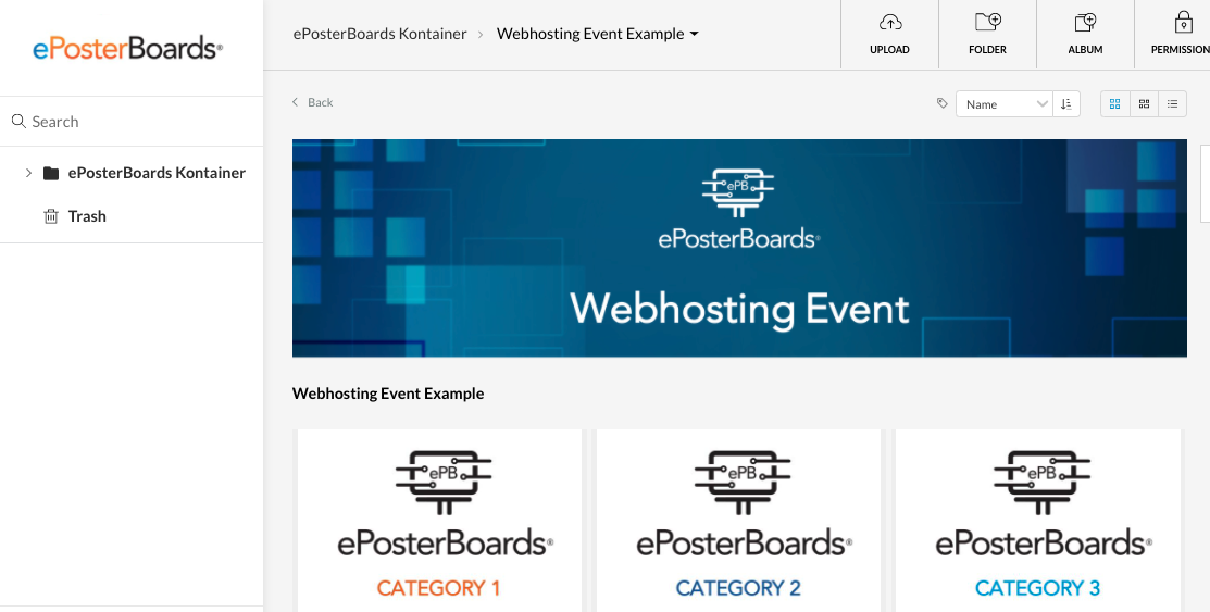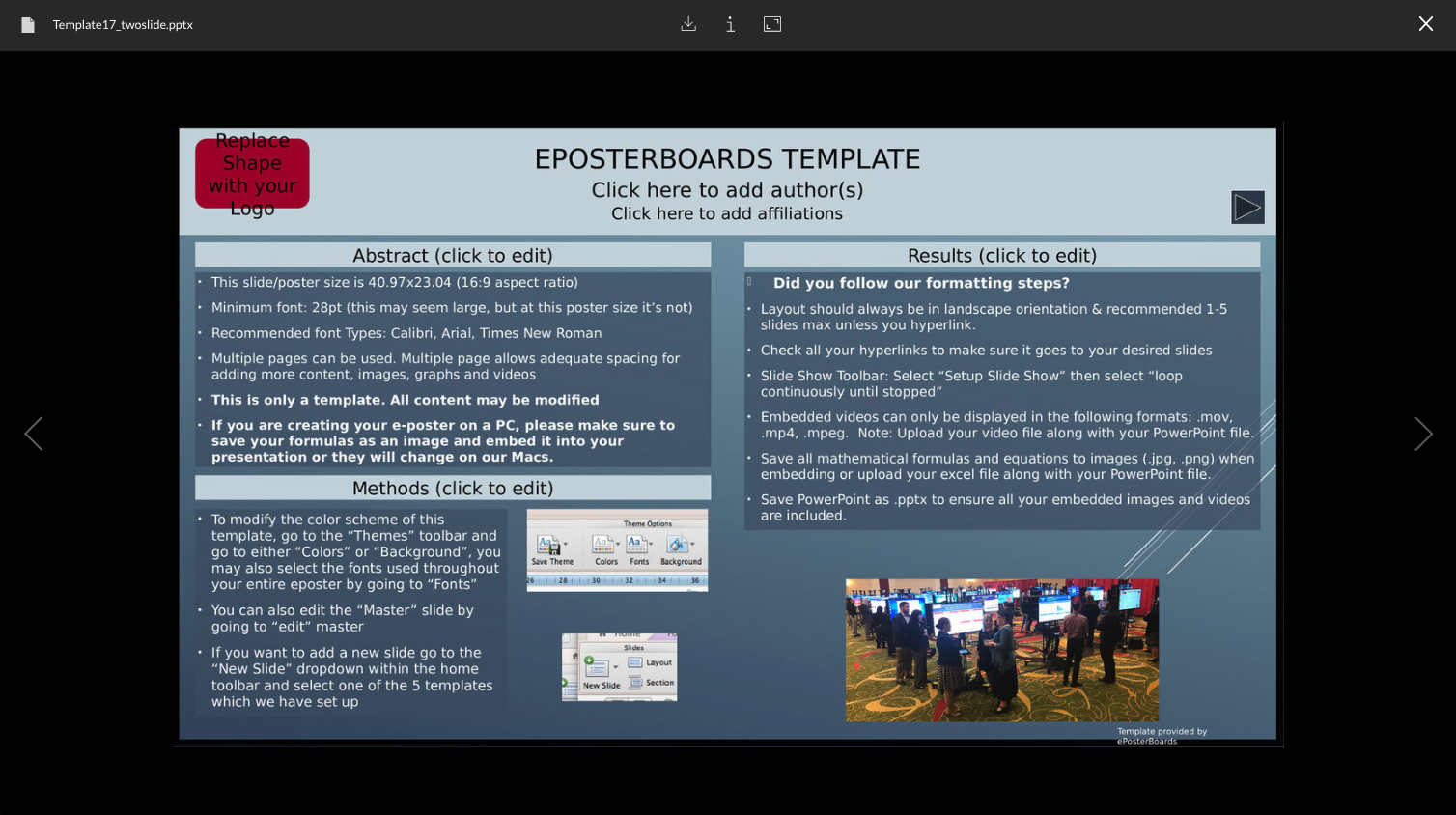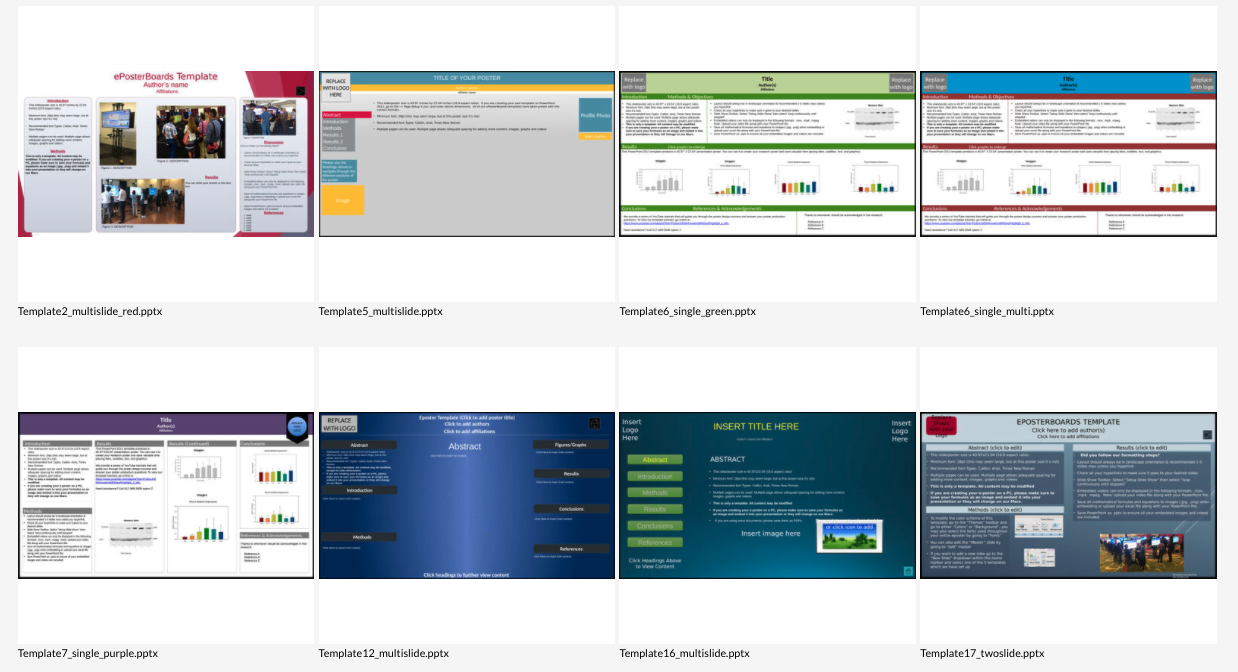 Below is an example of an ePoster gallery. Choose how the files are named and sorted. Multiple types of files can be added from videos to PDFs to images.